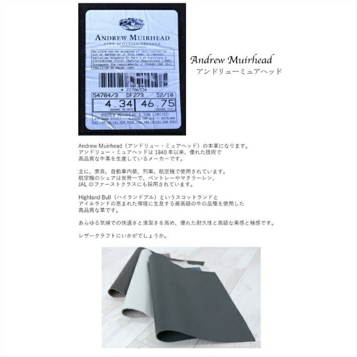 8枚以上のご注文は宅配便を選択してください本革 生地Audrew Muirhead(アンドリュー・ミュアヘッド)アンドリュー・ミュアヘッド は1840年以来、優れた技術で高品質な牛革を生産しているメーカーです。