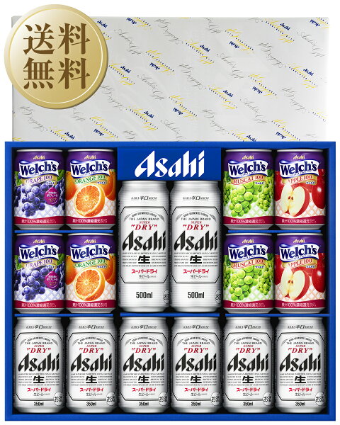 ●商品名:アサヒ スーパードライファミリーセット ●セット記号:FS-3N ●セット内容:アサヒスーパードライ缶350ml×6本 500ml×2本 ウェルチ 280g×8本 (コンコードグレープ・オレンジ・マスカット・アップル 各2本) ■こちらの商品はアサヒの専用包装紙で包装されます。